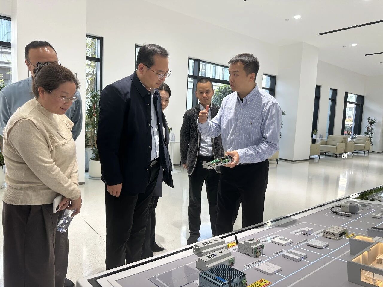 来宾参观了智网AI中心展厅,深入了解智网公司在量子虚拟电厂、整县能源托管等领域的创新实践与成果。