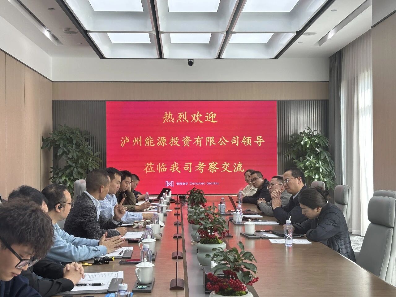 3月4日下午,泸州能源投资有限公司(简称“泸州能投”)董事长李玉明,四川川发禹润环境科技有限公司(简称“川发禹润”)董事、总经理杨建国一行莅临四川川能智网实业有限公司(简称“智网公司”)参观交流。智网公司常务副总经理曾光、副总经理严怡、生态链事业部总经理顾小龙热情接待。