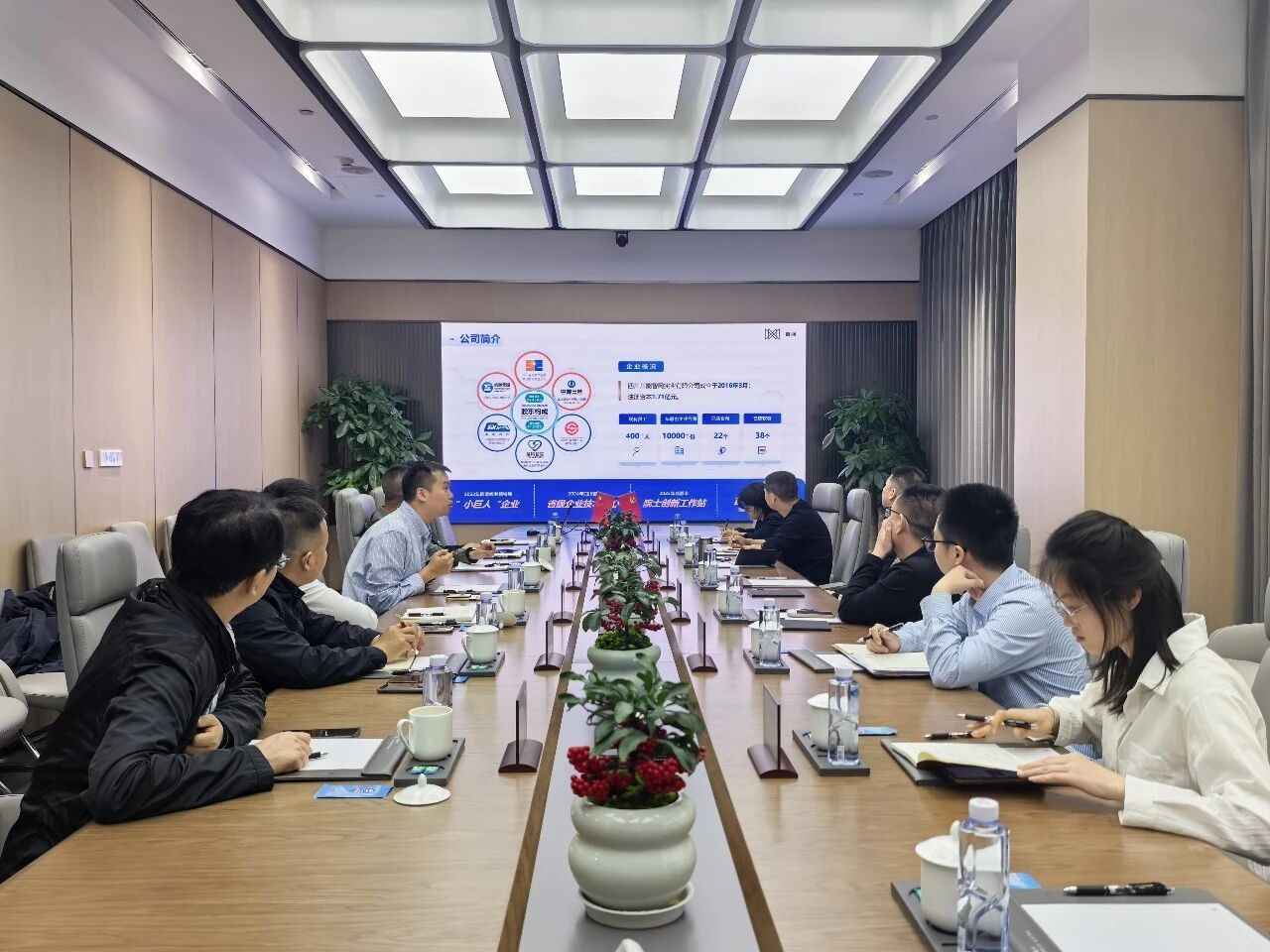 江安县委副书记、江安经开区党工委书记杨宇,县经合外事局党组书记、局长刘恋,江安生态环境局党组书记、局长别昭君,江安经开区党工委委员、管委会副主任、县新能公司联合党支部书记罗乾宇,县政府办政策研究股股长任健,县经合外事局经济合作股股长牟月秀等;智网公司生态链事业部吴恒、田景彪参加座谈。